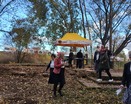 Tradycyjnie nowo przyjęci uczniowie posadzili koło szkoły drzewko.