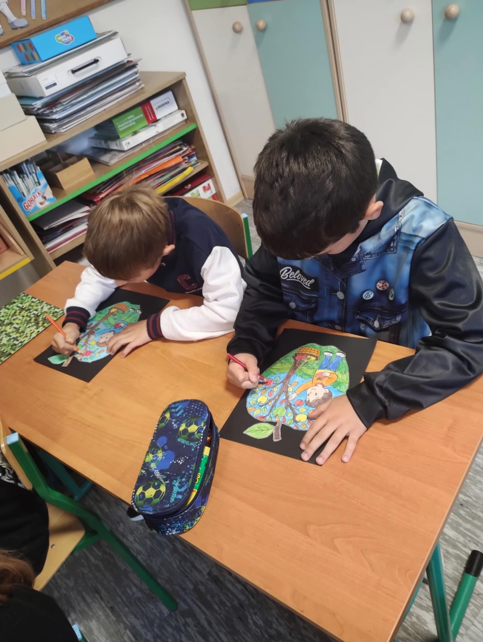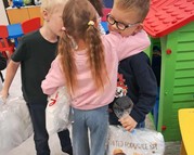 Na zakończenie, każdy przemyślał, co może zrobić w swoim najbliższym otoczeniu, aby ulżyć Ziemi i zaprzyjaźnić się z nią. Uczniowie zaopatrzeni w rękawice ochronne i worki na śmieci, wyruszyli w teren, aby przyłączyć się do akcji „Sprzątanie Świata”.