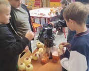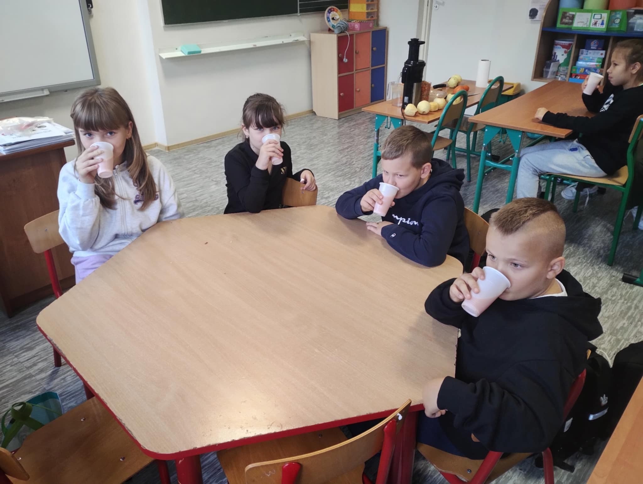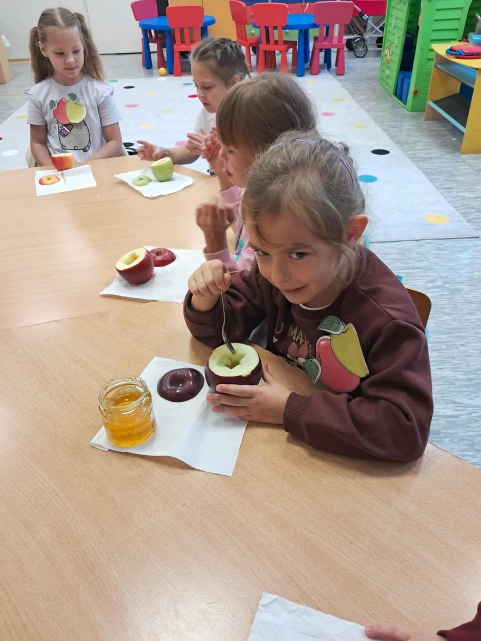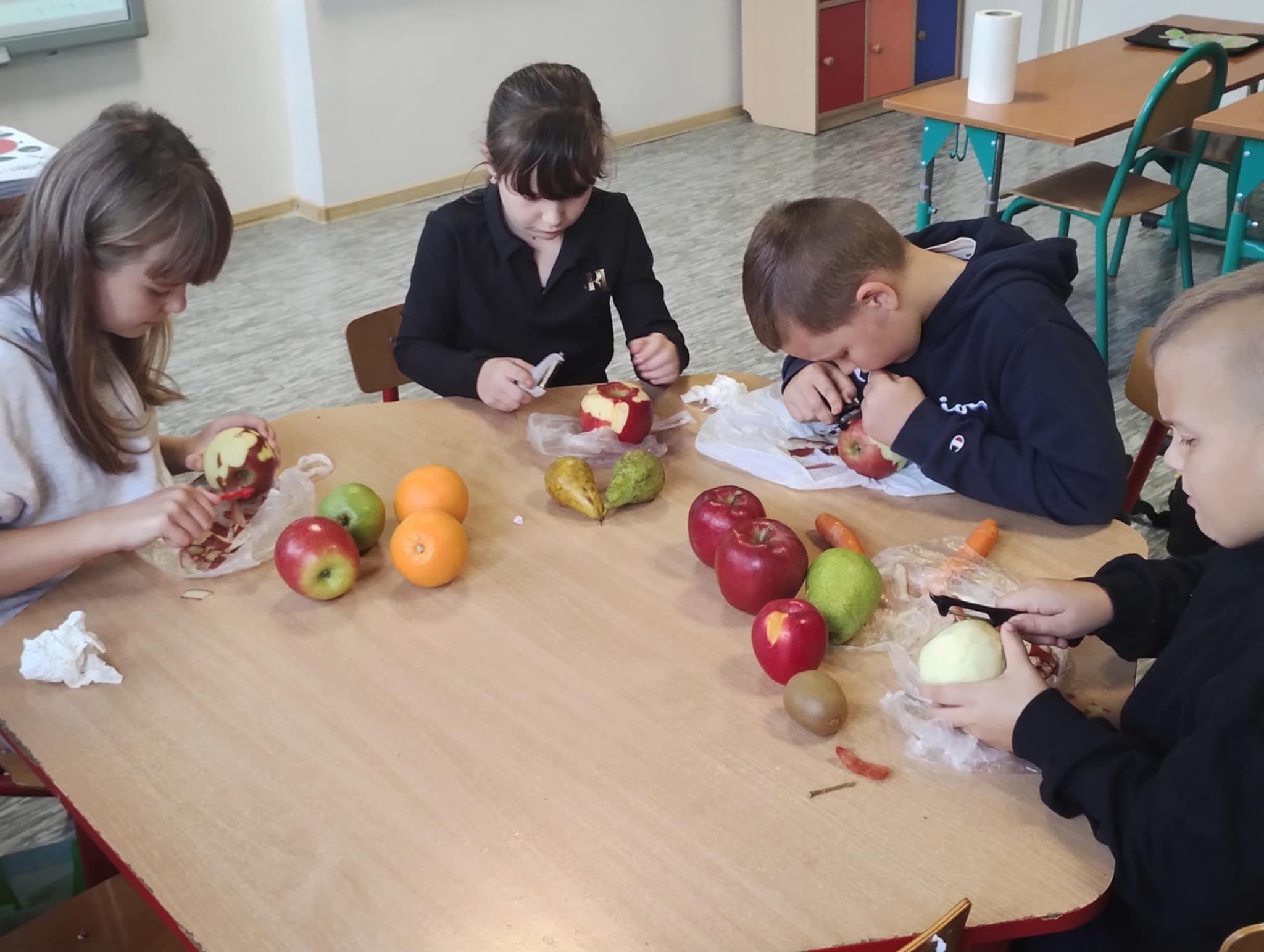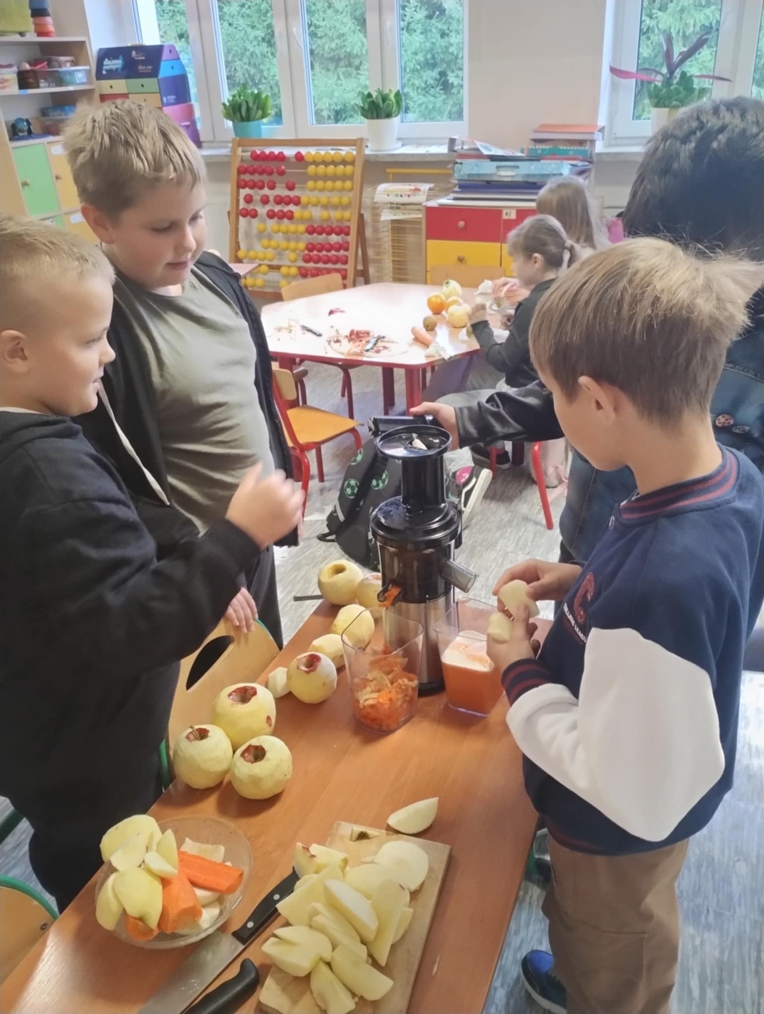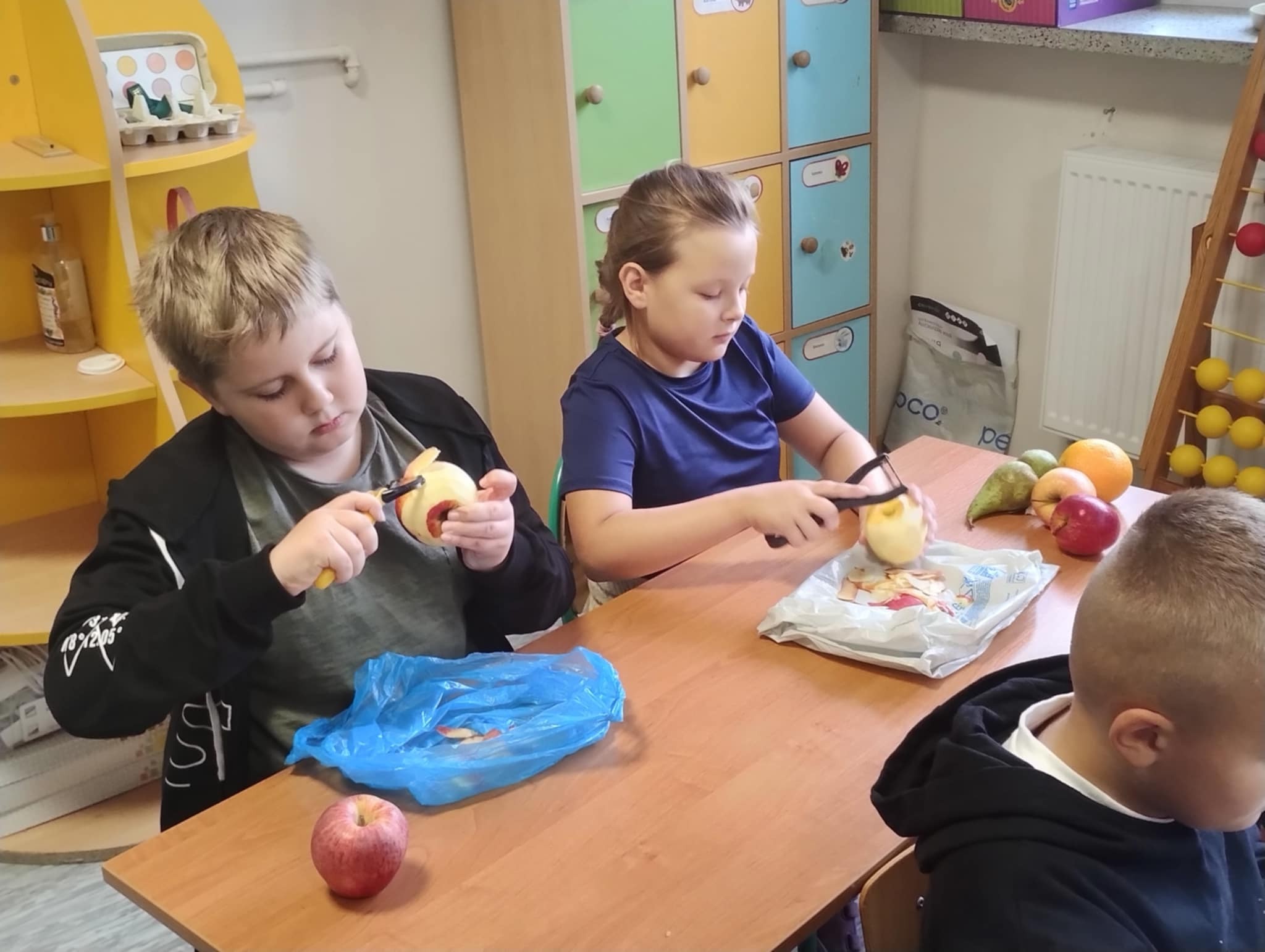 Jabłka to jedne z najpopularniejszych owoców na świecie🍎W Polsce mają szczególne znaczenie, gdyż jesteśmy jednym z największych producentów jabłek w Europie, a sadownictwo stanowi ważny element naszej kultury i gospodarki🌳 Tradycja jedzenia jabłek i ich przetworów towarzyszy nam od pokoleń🫂Dzieci poznały rozwój jabłka – od kwiatuszka do jabłuszka, miały możliwość wykonać kilka prac związanych z tym owocem, jak również przygotować swoje jabłuszka do pieczenia. Na koniec nastąpiła degustacja przyrządzonych smakołyków 🍏🍴Uczniowie klas II–III dodatkowo przygotowali świeży sok z darów naszych miejscowych sadów, natomiast starsi zmierzyli się w konkurencji polegającej na obieraniu jabłka na czas.