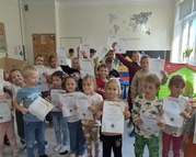 21 marca wszyscy radośnie witaliśmy wiosnę. Dzieci uczestniczyły w zabawach i zawodach sportowych, konkursie przyrodniczym i plastycznym. Udaliśmy się też na spacer nad rzekę. Tam topiliśmy i paliliśmy Marzannę.