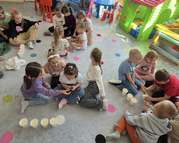 Nasi zerówkowicze zamienili się w prawdziwych projektantów mody i stworzyli swoje własne, kolorowe koszulki w kropki. Każda z nich była kolorowa i niepowtarzalna 👏