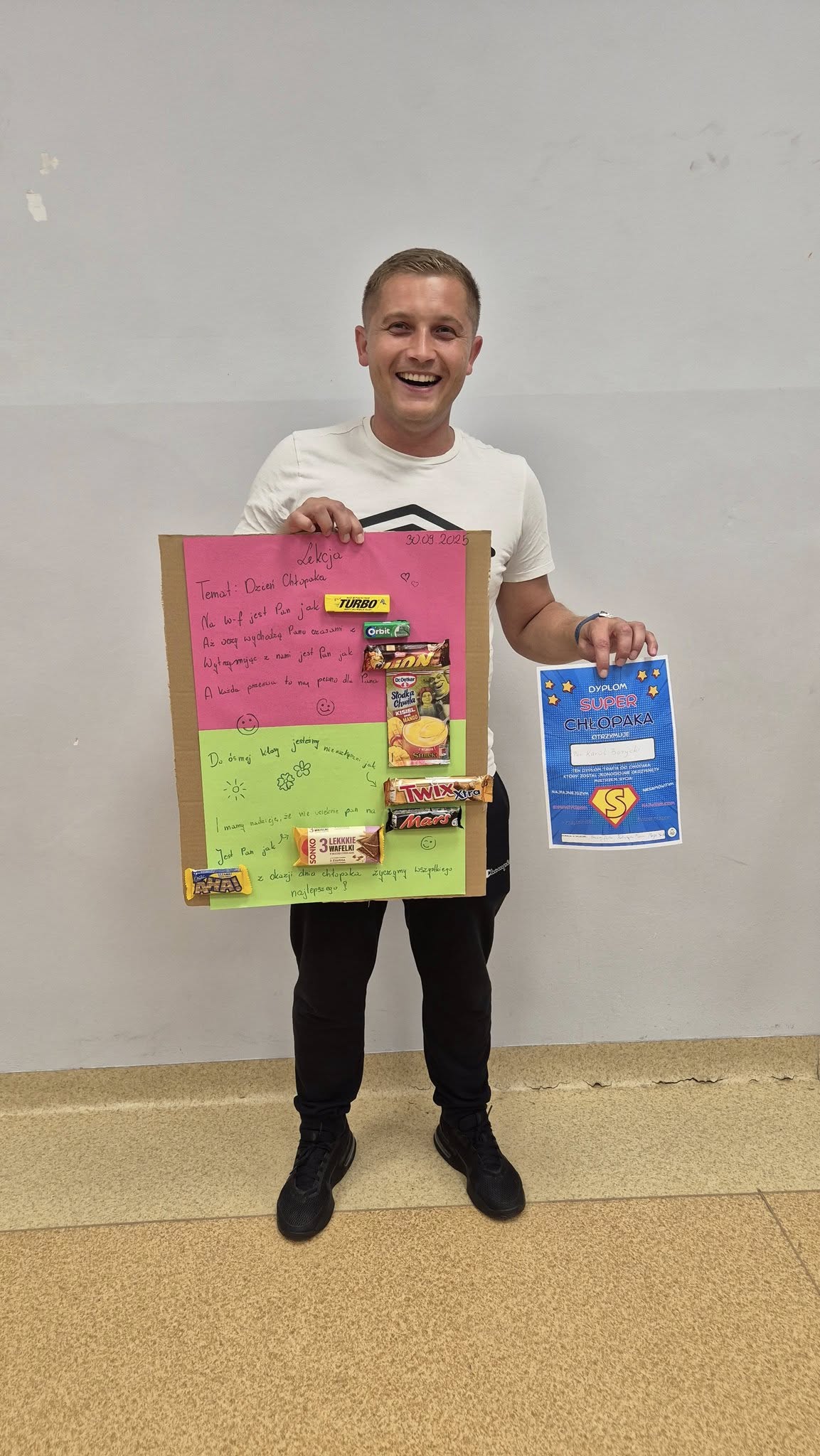 Z okazji Dnia Chłopaka 🧍♂️dzisiejszy dzień w naszej szkole upłynął w wyjątkowej atmosferze, a całości dopełnił słodki poczęstunek oraz upominiki dla najmłodszych uczniów, przygotowane specjalnie na tą okazję 🍫🤭 Była to chwila pełna uśmiechu, życzliwości i miłych gestów, które sprawiły, że każdy poczuł się doceniony i ważny.
