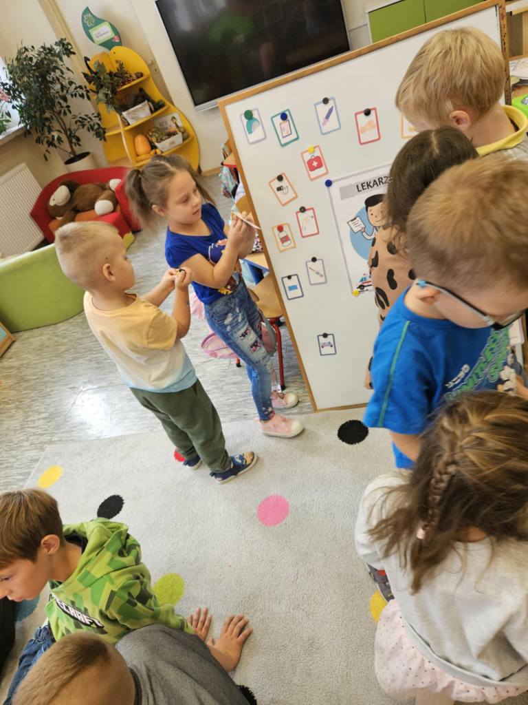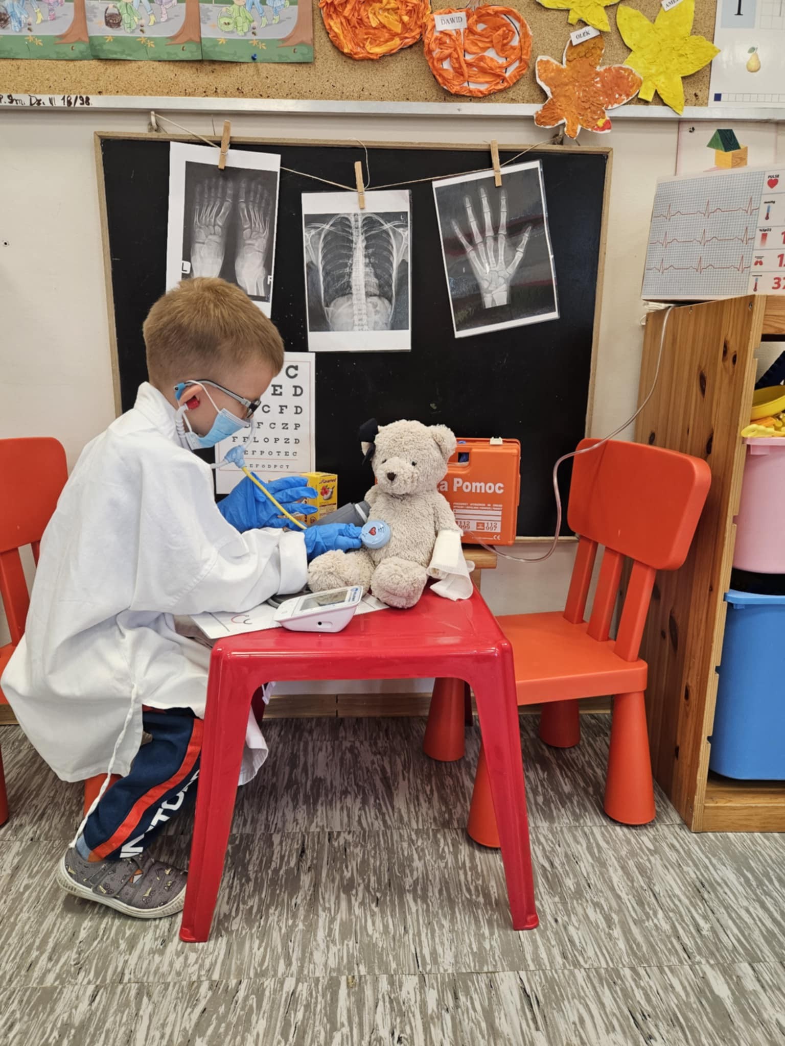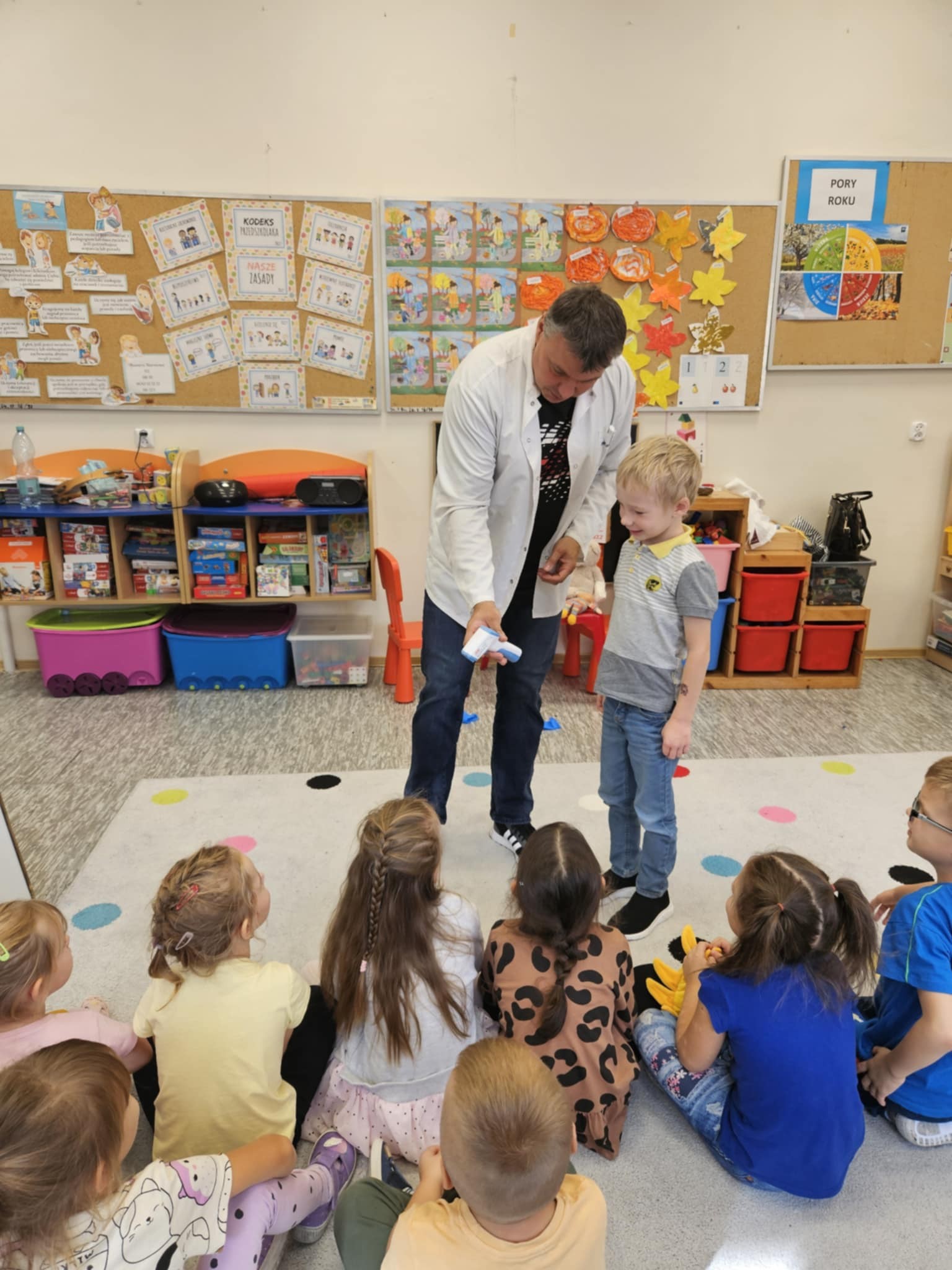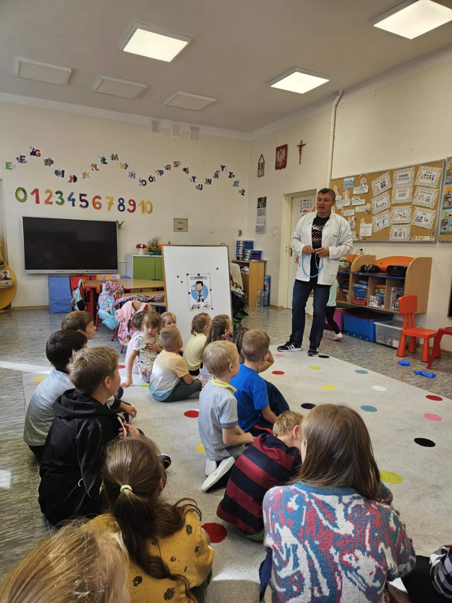 1 października obchodzimy Międzynarodowy Dzień Lekarza W związku z tym wydarzeniem Naszą szkołę odwiedził specjalny gość Dr Rafał Czarnecki. Dzieci dowiedziały sie wielu ciekawych informacji m.in.: jak wygląda praca lekarza, jakich rzeczy używa lekarz w codziennej pracy, jak wygląda badanie w gabinecie lekarskim. Nasz gość przeczytał także dzieciom wiersz o tym jak dbać o zdrowie ,co zapoczątkowało dyskusje na temat codziennych nawyków służących naszemu zdrowiu. Dzieci miały możliwość wykazania sie swoją wiedzą na temat zdrowia rozwiązując ciekawe zadania pod okiem Pana Doktora.Wszyscy uczniowie z uwagą słuchali Naszego Gościa, zadawali dużo pytań, a nawet sami na chwilę mogli wcielić się w rolę lekarza. Dziękujemy serdecznie Panu Doktorowi za poświęcony czas i bardzo ciekawe spotkanie.