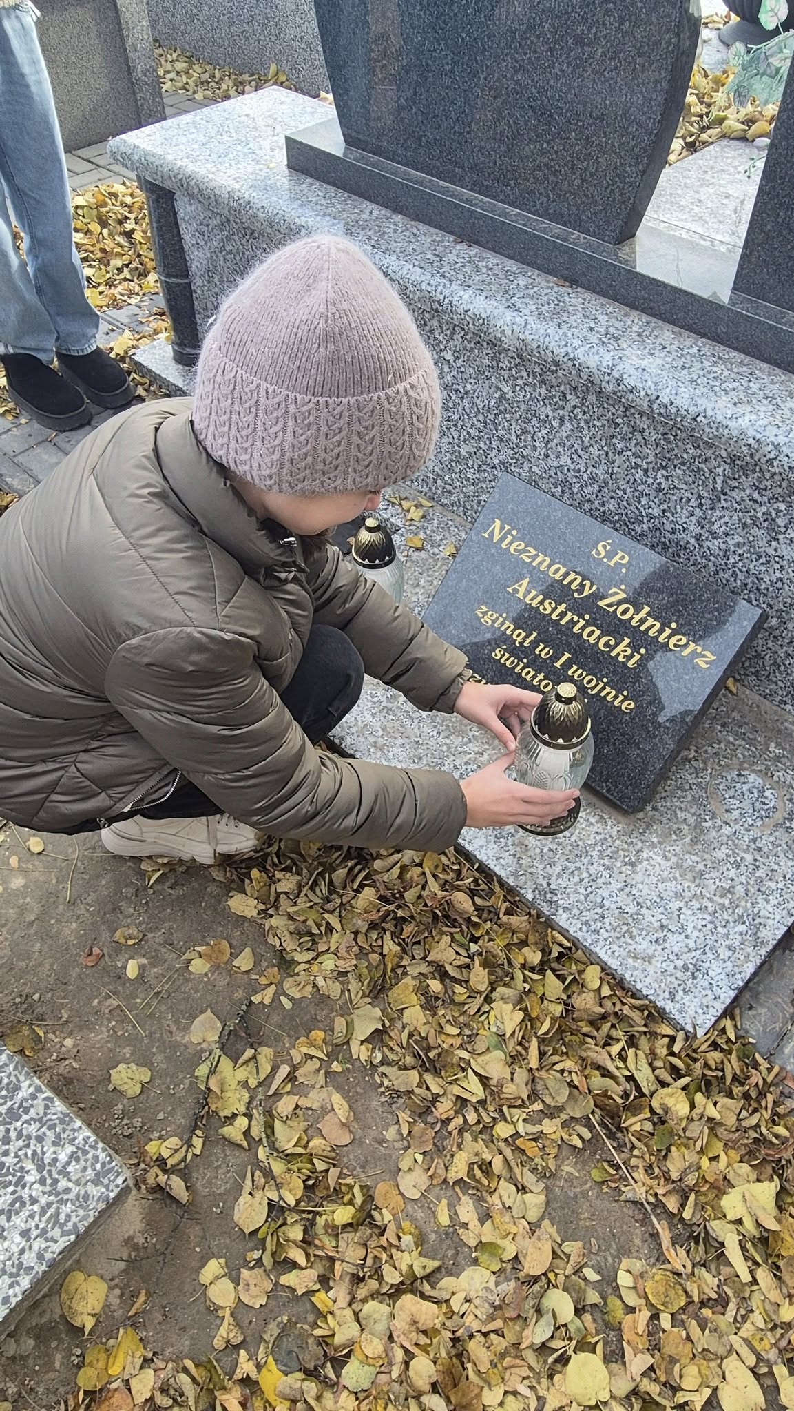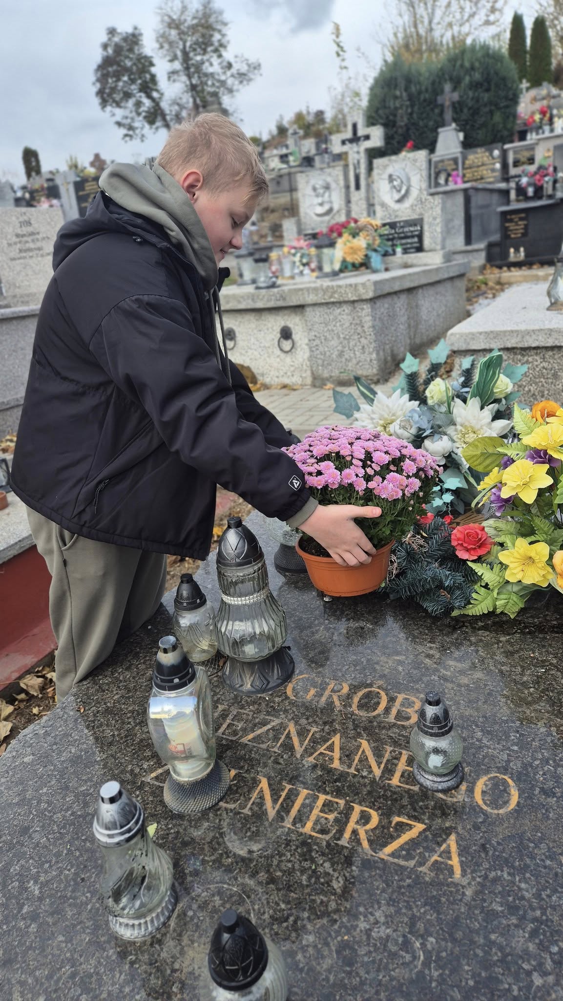 Wolontariusze naszej szkoły odwiedzili groby nieznanych żołnierzy. Z szacunkiem uporządkowaliśmy mogiły, usunęliśmy liście i zapaliliśmy znicze, oddając w ten sposób hołd tym, którzy oddali życie za ojczyznę. Była to chwila refleksji i zadumy nad wartością pamięci oraz wdzięczności wobec tych, którzy odeszli w obronie wolności.