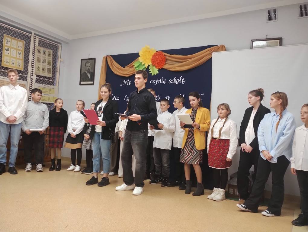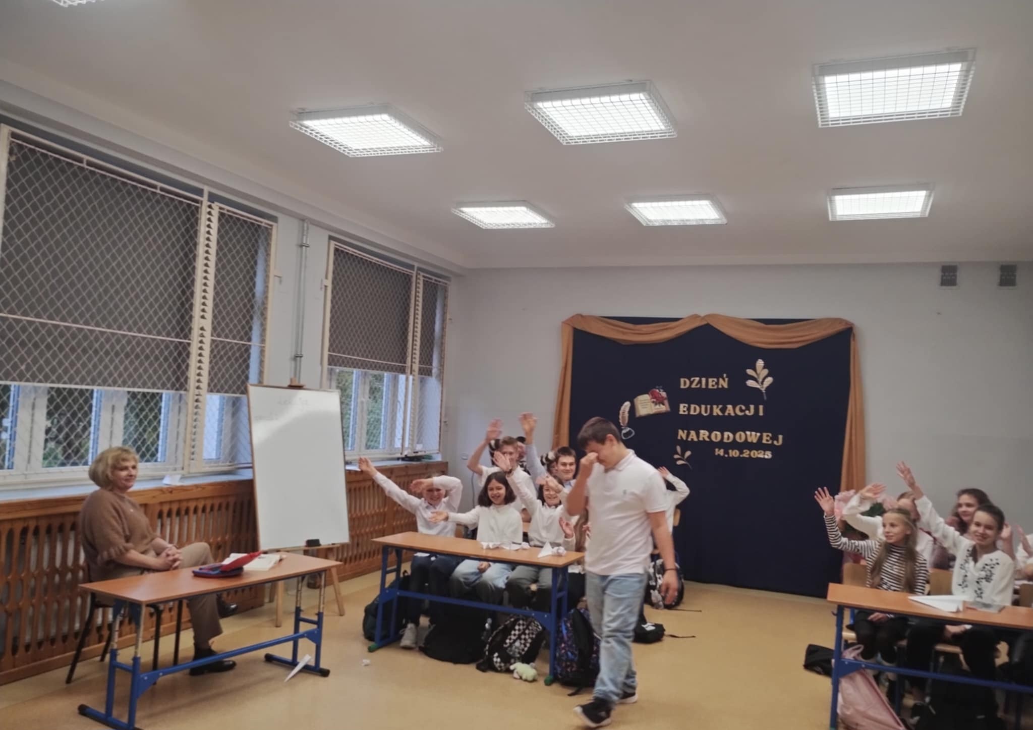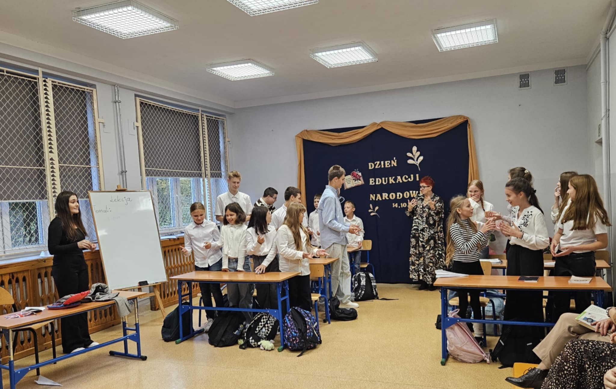W piątek świętowaliśmy Dzień Edukacji Narodowej. Uczniowie przygotowali wyjątkowy występ dla swoich nauczycieli, a w tym roku na scenie pojawili się również… sami pedagodzy! Humor, serdeczność i wzajemna życzliwość stworzyły niezapomniany klimat tego dnia.