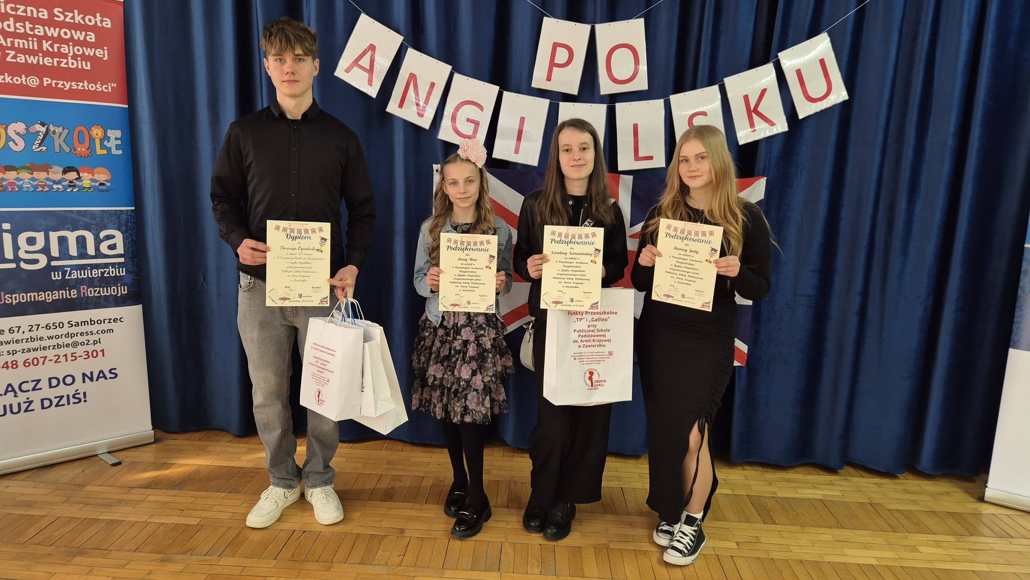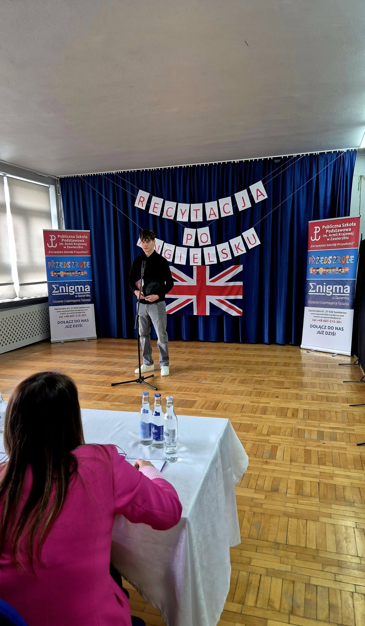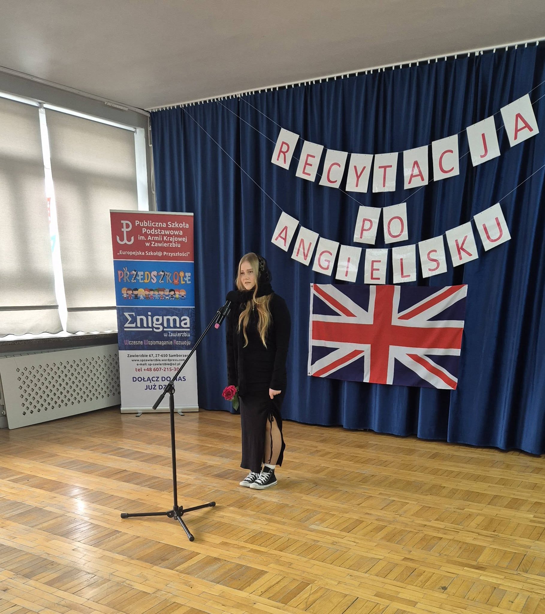 Uczniowie klas 6–8 wzięli udział w V Powiatowym Konkursie Recytatorskim z Języka Angielskiego, który odbył się w Publicznej Szkole Podstawowej im. Armii Krajowej w Zawierzbiu. 🎤