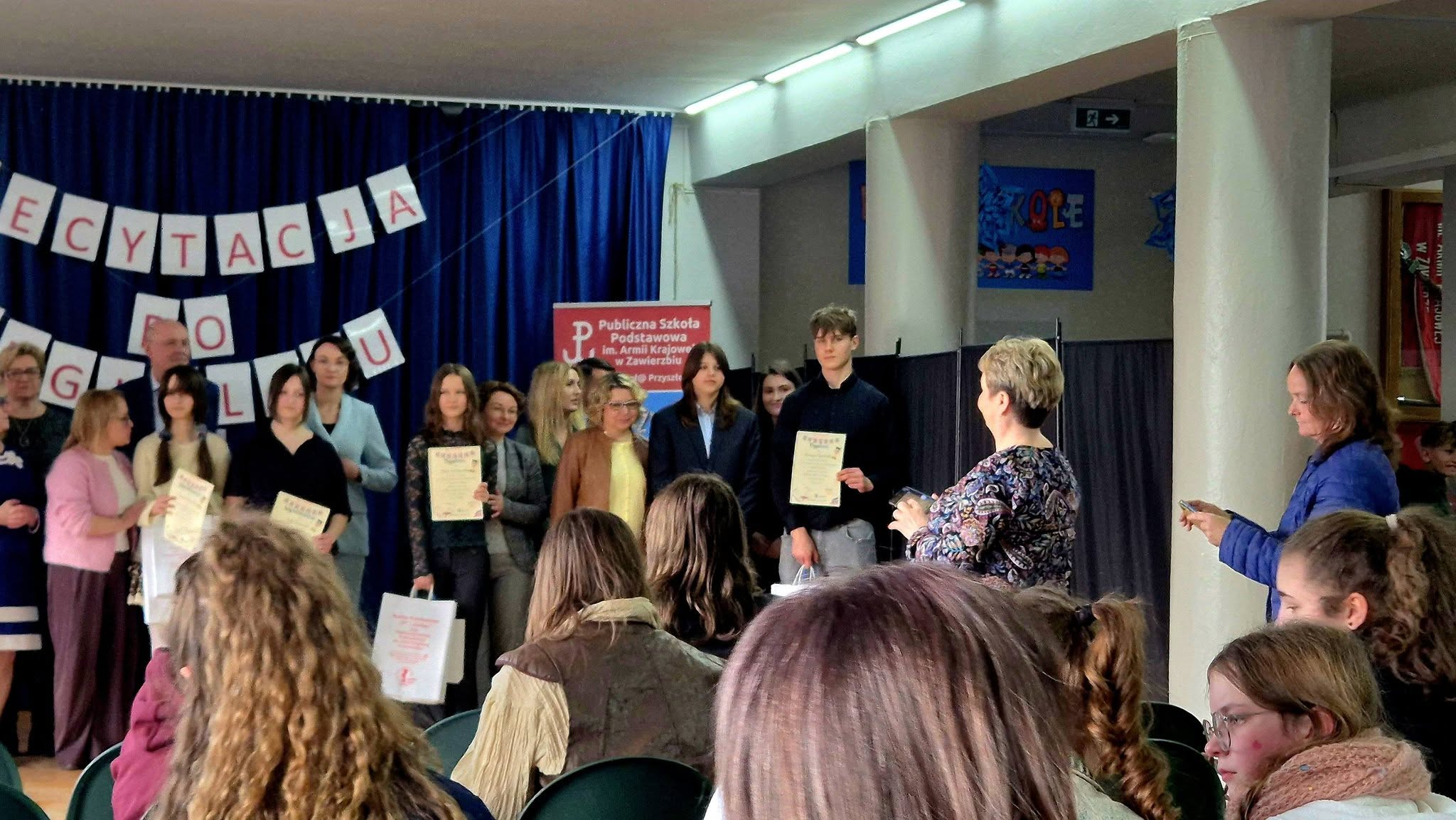 Nagrody i dyplomy wręczyła Pani Dyrektor, gratulując wszystkim uczestnikom za zaangażowanie, odwagę i piękne interpretacje tekstów. Gratulujemy wszystkim młodym miłośnikom literatury i dziękujemy za magiczne chwile z książką!