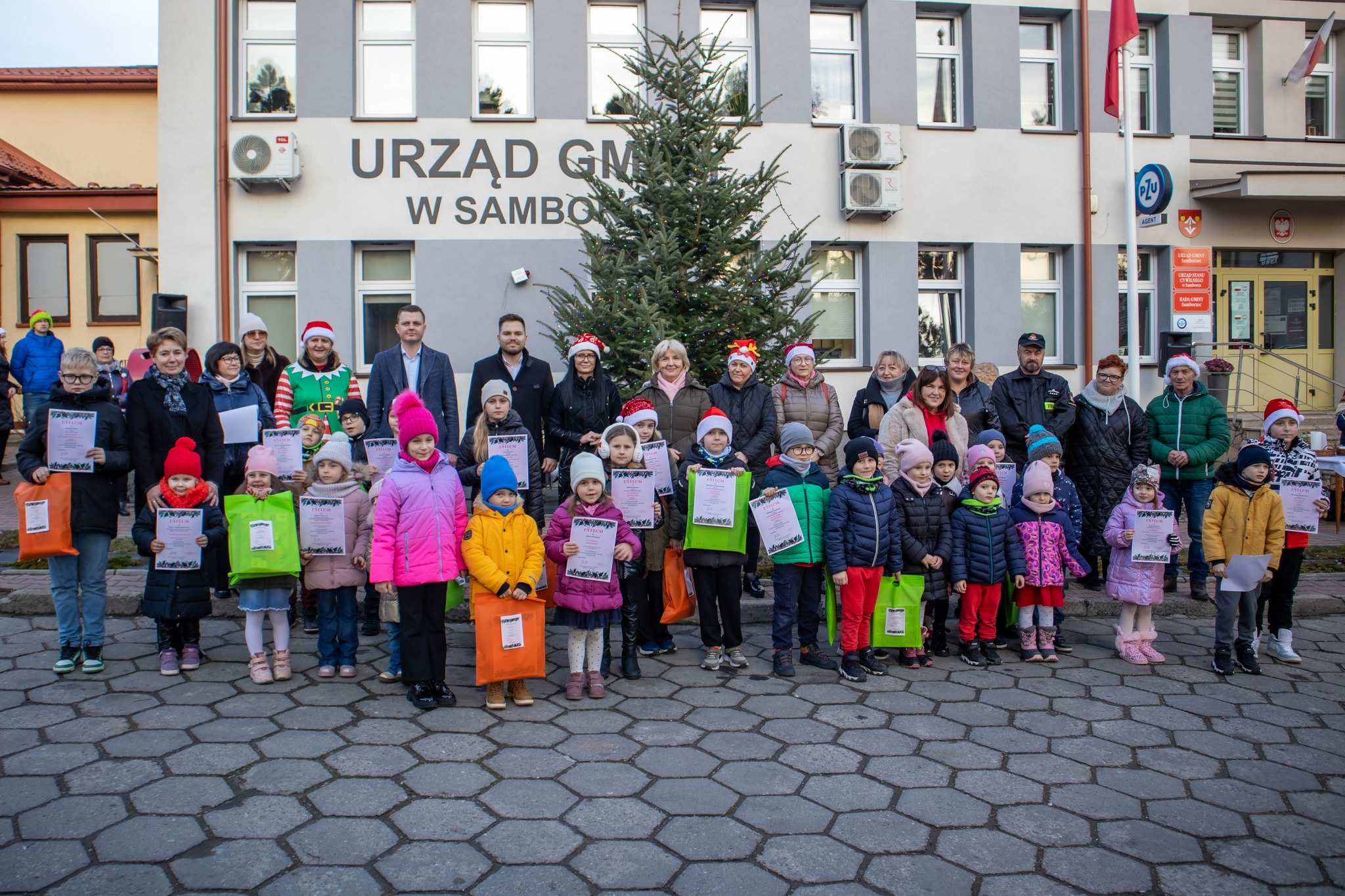 Laureaci konkursu plastycznego pt. "Święty Mikołaj zwiedza zabytki Sandomierza"