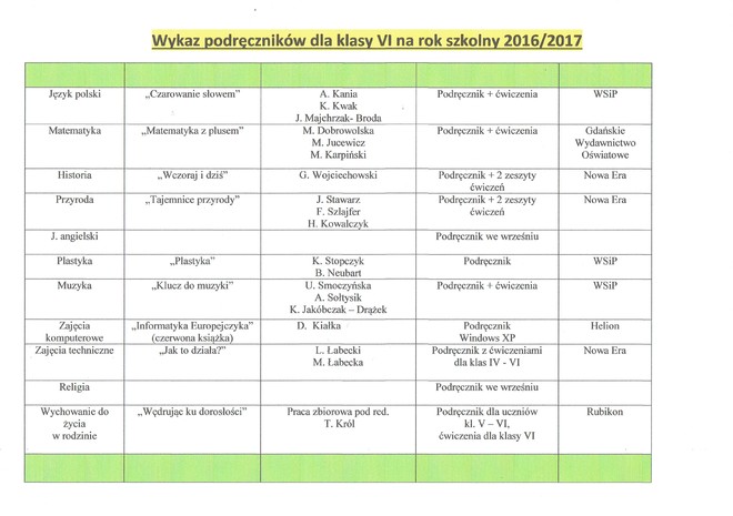 Wykaz podręczników 2015/2016