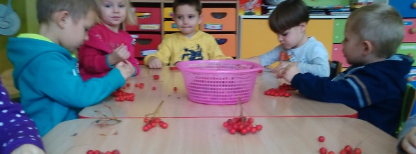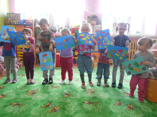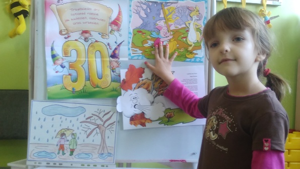 Podczas rozmów, zabaw, opowieści ruchowych, a także działań plastycznych dzieci wzbogacały wiedzę przyrodniczą na temat zmian zachodzących jesienią w świecie roślin i zwierząt. Efektem pracy przedszkolaków była makieta lasu. Łączenie w całość poszczególnych elementów było dla dzieci świetną zabawą. Każdy bardzo się starał, a efekt końcowy został osiągnięty.